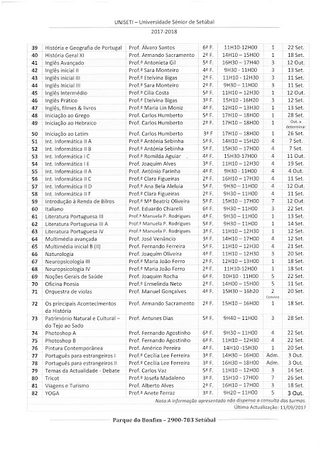 Consulte a composição das turmas na Sede de UNISETI