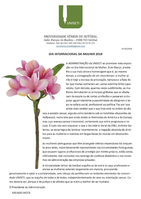 Foi uma cerimónia singela que teve lugar na capela de São Paulo. Era o último adeus a Ermelinda Ferreira, dedicada aluna da UNISETI há largos anos, amiga, dotada de um sorriso doce e franco. As filhas (o filho, longe no Brasil, acompanhou, graças às novas tecnologias aquele momento de despedida) disseram o que sentiam pela mãe, a sua coragem, dedicação, inteligência e como haviam chegado a Setúbal no período da descolonização. Sem deslocar os olhos para o passado, não o omitindo, deu ímpeto a um presente que não permitia devaneios saudosistas. Agradeceram sentidamente à UNISETI, a sua outra casa e família, que lhe permitira regressar aos estudos e, sobretudo, desafiar os novos desafios que as tecnologias de informação lhe colocavam: as aulas de multimédia constituía o seu principal foco. Pediram-me, na altura, que dissesse umas palavras. Seriam naturalmente de circunstância. Mas fica aqui este breve registo de uma aluna que soube encarnar como poucas o espírito de uma Universidade Sénior. A de que nunca é tarde para aprender e fazer novos amigos. Deixou-nos quando estamos a celebrar o 15.º aniversário. A sua memória ficará para sempre inscrita no nosso livro de afectos e gratidão.